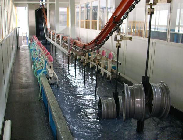 涂裝機(jī)械中電泳涂裝是近年來(lái)最普及的涂底漆的方法之一,它是將具有導(dǎo)電性的被涂物作為陰極(或陽(yáng)極)浸漬在用純水稀釋的、固體濃度為18%左右的電泳涂料槽液中,在槽中另設(shè)置與其相對(duì)應(yīng)的陽(yáng)極(或陰極),在兩極間通一定時(shí)間的直流電,在被涂物上析出均勻且水不溶解的涂膜的一種涂裝方法。適用于汽車(chē)摩托車(chē)車(chē)身及零部件表面底漆涂裝、工藝品裝飾涂裝、機(jī)電產(chǎn)品防腐涂裝等。 電泳涂裝是利用外加電場(chǎng)使懸浮于電泳液中的顏料和樹(shù)脂等微粒定向遷移并沉積于電極之一的基底表面的涂裝方法。電泳涂裝的原理發(fā)明于是20世紀(jì)30年代末,但開(kāi)發(fā)這一技術(shù)并獲得工業(yè)應(yīng)用是在1963年以后,電泳涂裝是近30年來(lái)發(fā)展起來(lái)的一種特殊涂膜形成方法,是對(duì)水性涂料最具有實(shí)際意義的施工工藝。具有水溶性、無(wú)毒、易于自動(dòng)化控制等特點(diǎn),迅速在汽車(chē)、建材、五金、家電等行業(yè)得到廣泛的應(yīng)用。 電泳涂裝是把工件和對(duì)應(yīng)的電極放入水溶性涂料中,接上電源后,依靠電場(chǎng)所產(chǎn)生的物理化學(xué)作用,使涂料中的樹(shù)脂、顏填料在以被涂物為電極的表面上均勻析出沉積形成不溶于水的漆膜的一種涂裝方法。電泳涂裝是一個(gè)極為復(fù)雜的電化學(xué)反應(yīng)過(guò)程,其中至少包括電泳、電沉積、電滲、電解四個(gè)過(guò)程。電泳涂裝按沉積性能可分為陽(yáng)極電泳(工件是陽(yáng)極,涂料是陰離子型)和陰極電泳(工件是陰極,涂料是陽(yáng)離子型);按電源可分為直流電泳和交流電泳;按工藝方法又有定電壓和定電流法。目前在工業(yè)上較為廣泛采用的是直流電源定電壓法的陽(yáng)極電泳。