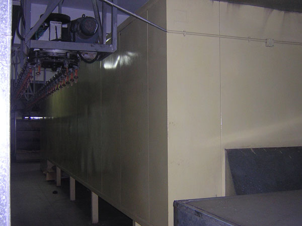 迂回式園盤油漆涂裝設(shè)備適用于工件尺寸小、結(jié)構(gòu)無屏閉型腔工 件的靜電自動噴涂。選用進口齒輪供漆泵。 輸漆泵和噴盤上下速度同步變化。 自動調(diào)控電動升降機。 具有手動和自動控制二種輸漆方式。Ω迂回式園盤油漆涂裝設(shè)備 采用進口變頻器和電氣控制元件。 涂裝室廢氣經(jīng)處理后達標排放符合國家環(huán)保標準要求。 直線型油漆涂裝設(shè)備適用于各工件特別是工件尺寸大結(jié)構(gòu)復雜的工件涂裝。 可根據(jù)產(chǎn)品質(zhì)量要求設(shè)計涂裝工位數(shù)量。 涂裝室為水簾或油簾型式,廢氣經(jīng)處理后達標排放,符合國家環(huán)保標準。 供漆方式為壓送式或齒輪泵型式,根據(jù)產(chǎn)品的涂裝特點具體設(shè)計選擇。 涂裝室的空氣凈化環(huán)境要求根據(jù)產(chǎn)品及用戶要求設(shè)計選擇。 噴漆烤漆一體化兩用房主要用汽車車身及特大工件的噴烤漆之用。送風:送風空氣經(jīng)二級凈化處理,最終達到中效或亞高效凈化效果 。排氣:雙層過濾形式,迷宮式擋漆板加進口過濾材料。 照明:全封閉式日光照明燈 。 加熱:選用進口輕油燃燒主機間接加熱 。噴烤漆房:雙向彩鋼夾心板。